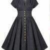 🎨 Exquisite Details: The front placket of gold buttons adds a touch of glamour while ensuring easy on/off access. Contrast topstitching elevates the design, and the voluminous skirt swishes gracefully with every step, celebrating feminine movement and grace.