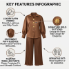 🎨 Exquisite Details: Ornate 3D gold decorative buttons adorn the front placket, adding a touch of opulence. The puff sleeve cuffs and slightly flared hem of the pants enhance the vintage-inspired, refined aesthetic.