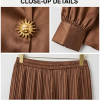 Luxury Satin Turn-Down Collar Puff Sleeve Blouse & Pleated Wide Leg Pants Two-Piece Set with Gold Decorative Buttons