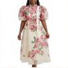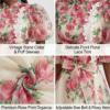 🎨 Exquisite Details: Lifelike large-scale pink rose prints and green foliage adorn the dress, complemented by delicate butterfly motifs and the signature front white floral trim. The vintage-inspired stand collar, puff sleeves, and bow waist elevate the design with timeless elegance.