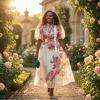 ✨ Style Statement: Embrace romantic vintage charm with this spring-inspired floral maxi dress. The ivory base beautifully showcases vibrant pink rose prints, delicate butterfly accents, and a standout vertical white floral trim, making it the perfect choice for dates, parties, and other elegant occasions.