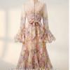 🎨 Exquisite Details: Lifelike watercolor floral prints add soft, layered visual interest, while a row of delicate buttons down the front enhances the vintage charm. The flare sleeves and tiered ruffle hem bring playful movement and elegance to the design.